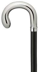 Chrome finish nylon crook handle Walking Cane mounted on black stained wood shaft with silver collar 36".Also available separately with walnut brown shaft.Cannot be made longer, but can be trimmed shorter - see box below.